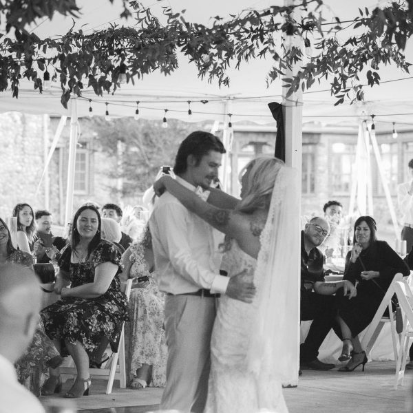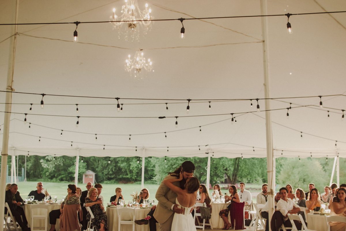 Canopy Tent – Our 1400 square foot white canopy tent is set up in the sprawling backyard against a backdrop of sparkling water. With 360 degree views, this timeless reception space provides a blank slate to make your “Pinterest-worthy” wedding dreams come true!