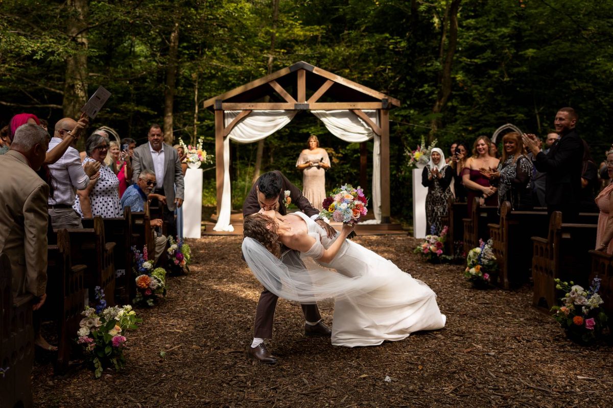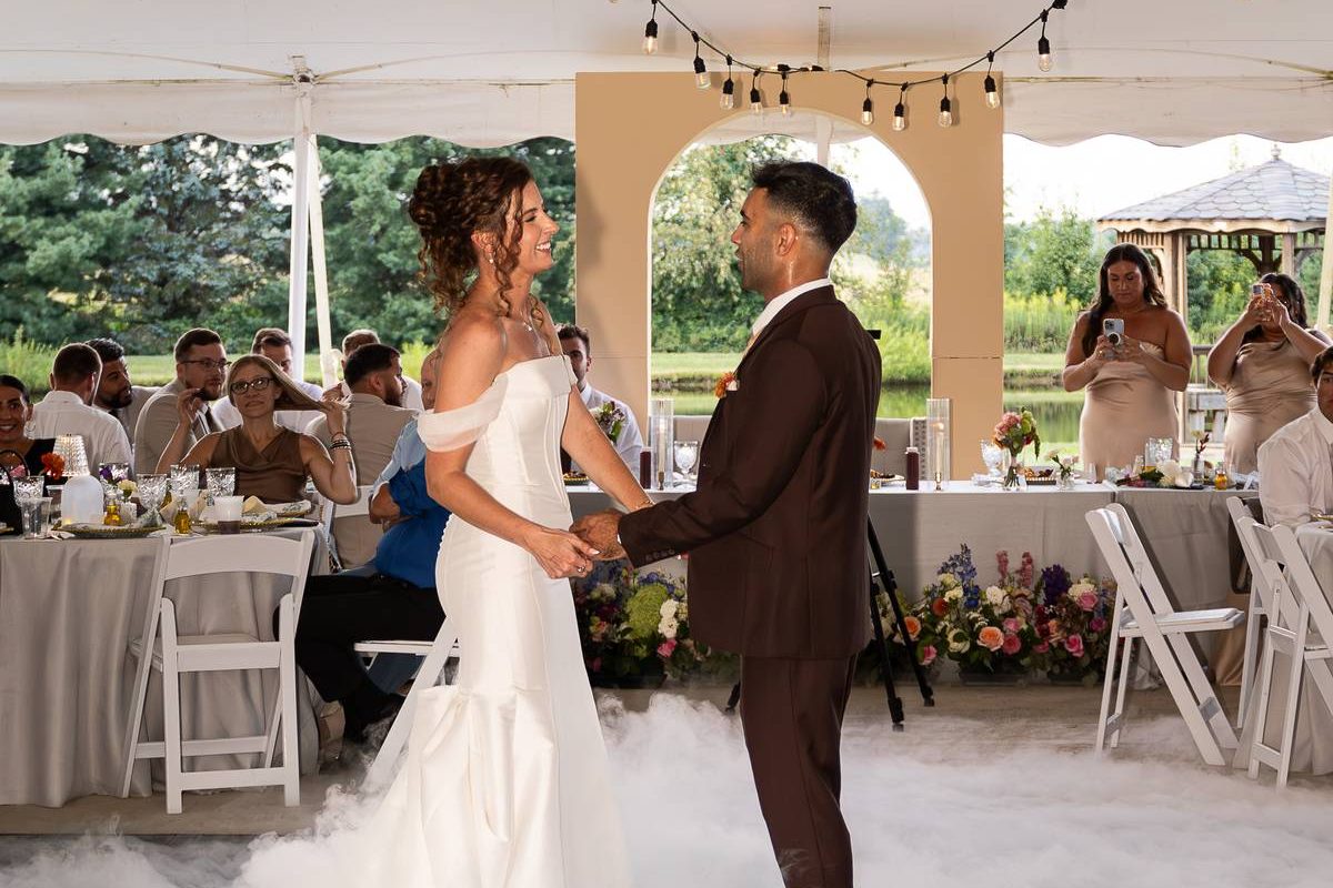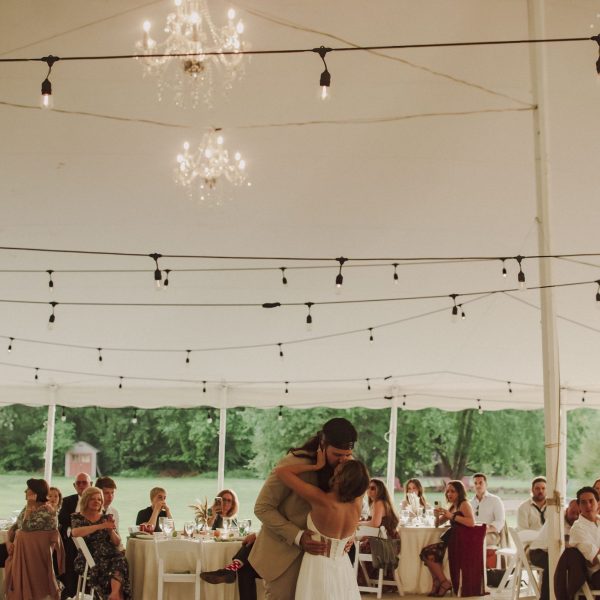 “The minute you turn onto the private driveway that leads up to The Stables, you feel that something special is coming. The wooded ceremony area is just magical. The reception is under the tent, alongside the lake, surrounded by gorgeous landscaping. The lights strung throughout the tent looked beautiful as the sun set. And if that isn’t enough, we were able to stay right there for the whole weekend. The house is magnificent. Our extended family stayed with us so the wedding lasted for three days. There’s so much to do there with the indoor pool, game room, movie theater, tennis courts, and boating just to name a few. I can’t imagine a better place to host your event!”