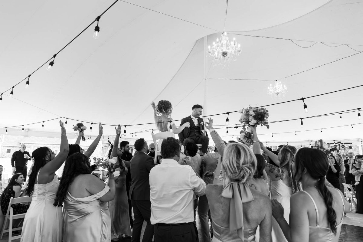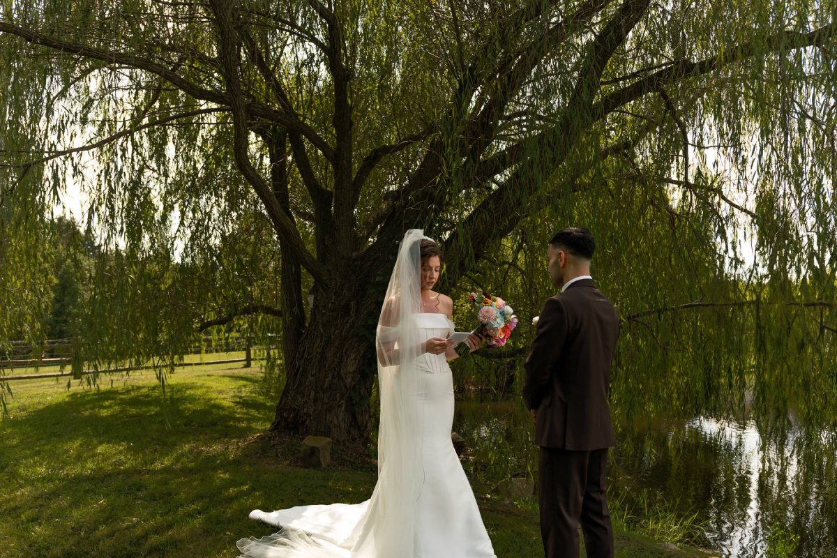 “The Stables Estate is absolutely gorgeous. From the wooded reception area, to the tent with the beautiful hanging lights, and the pond in the backyard – everything was such a dream! The house comfortably fit our entire wedding party, with any amenity you could ask for.”